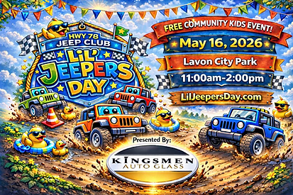 Lil’ Jeepers Day is a family-focused community event hosted by HWY 78 Jeep Club and in partnership with the Lavon Police Department. The event is designed to bring kids and families together for Jeep-themed activities, games, hands-on stations, and fun outdoor experiences in a safe and welcoming environment.